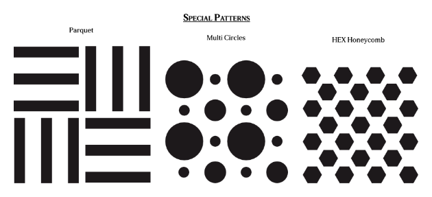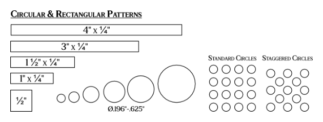Patterns and Scaling – Perforated grilles made on the punch allow for 6 different patterns, with multiple sizing options for 3 of the patterns bringing to 11 different options to choose from. While the DesignShape grilles have 6 different patterns each, each pattern has several different pattern scaling and sizing options. This provides over 10 million options to choose from between the different patterns and scaling options.